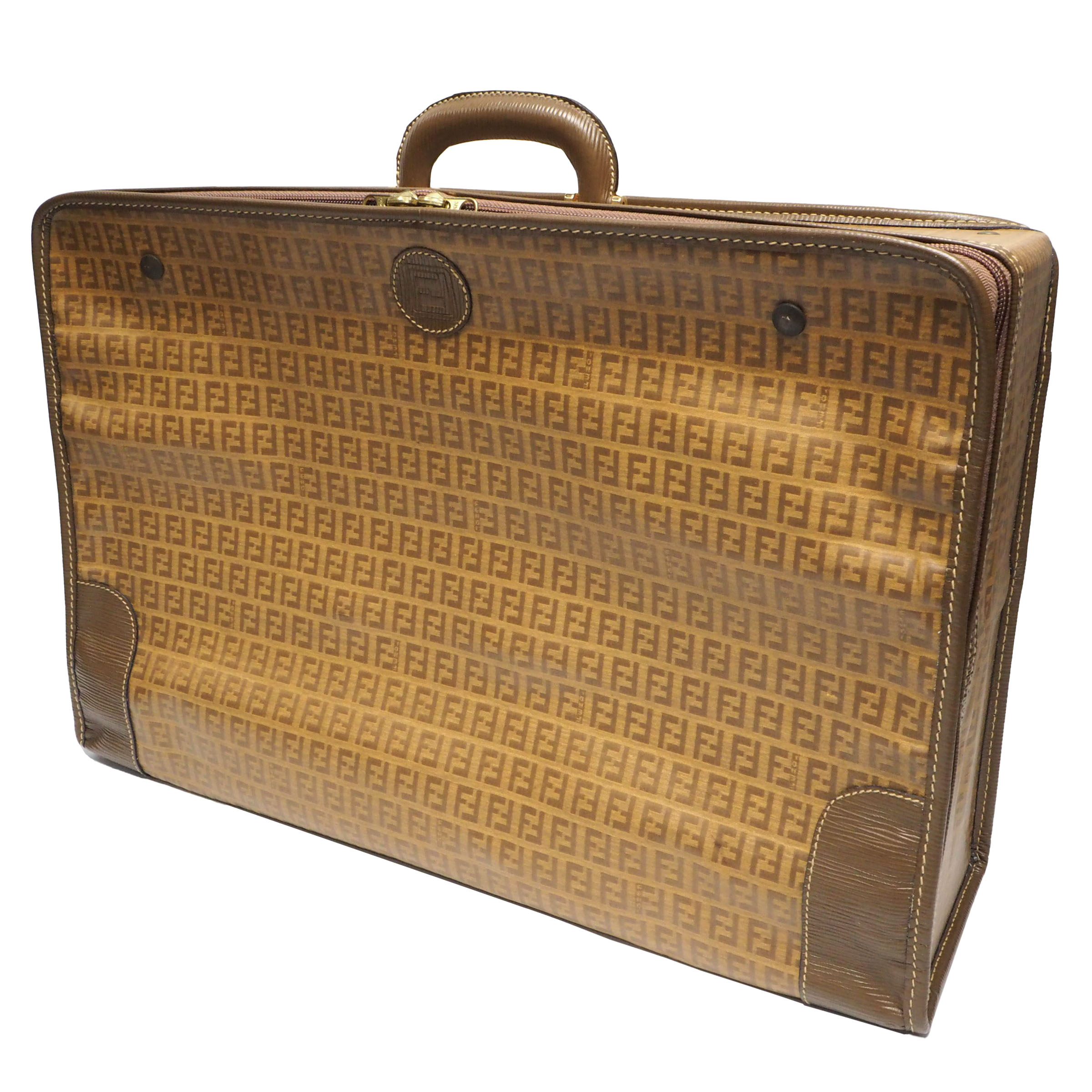 【中古】【非常に良い】 OLDFENDI オールドフェンディ ヴィンテージフェンディ ズッキーノ トランクケース スーツケース トラベルバッグ 旅行バッグ ユニセックス 1980年代 80’S FFロゴ PVC/レザー ゴールド金具 ブラウン/ベージュ