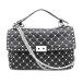 こちらは、スムース カーフスキンに、エナメルスタッズトリムのロックスタッズを配置したスモール ショルダーバッグです。