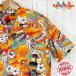 アロハシャツハワイ製メンズWinnieFashionウクレレアイランド柄/オレンジコットン【メール便送料無料】(宅配便別途)