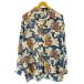 AVANTIアバンティシルク100%アロハシャツ長袖ウクレレ柄花柄オープンカラーブルー青Lメンズ