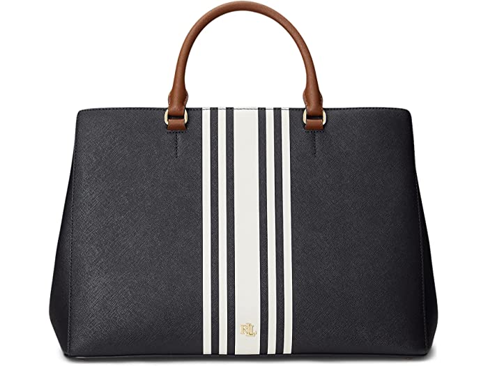 (取寄) ローレン ラルフローレン レディース クロスハッチ レザー ラージ ハンナ サッチェル LAUREN Ralph Lauren women LAUREN Ralph Lauren Crosshatch Leather Large Hanna Satchel French Navy/Vanilla Stripe/Lauren Tan