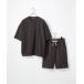 ルームウェアパジャマ【セットアップ】Kappa/カッパ別注ロゴ刺繍ビッグシルエットポンチ半袖プルオーバークルースウェット+ハーフス