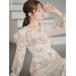 こちらは、繊細なタッチで描かれた儚げな花柄と陰影のコントラストが柔らかな女性らしい印象を表現しているワンピースです。