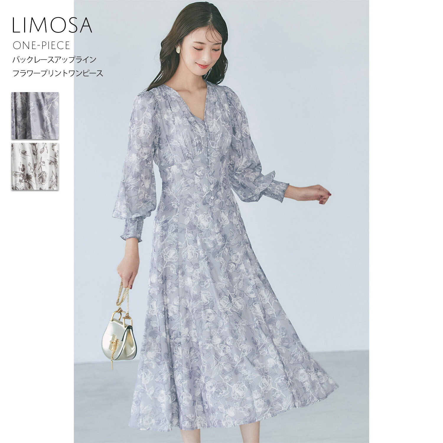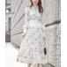 バックレースアップラインフラワープリントワンピース【limosa リモーザ】tocco closet(トッコクローゼット) ※宮本茉由さんはグレイッシュブルー着用 グレイッシュブルー オフホワイト 商品番号:186-180075