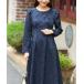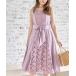 ワンピースウエストりぼん付きフラワーレース切り替えワンピース