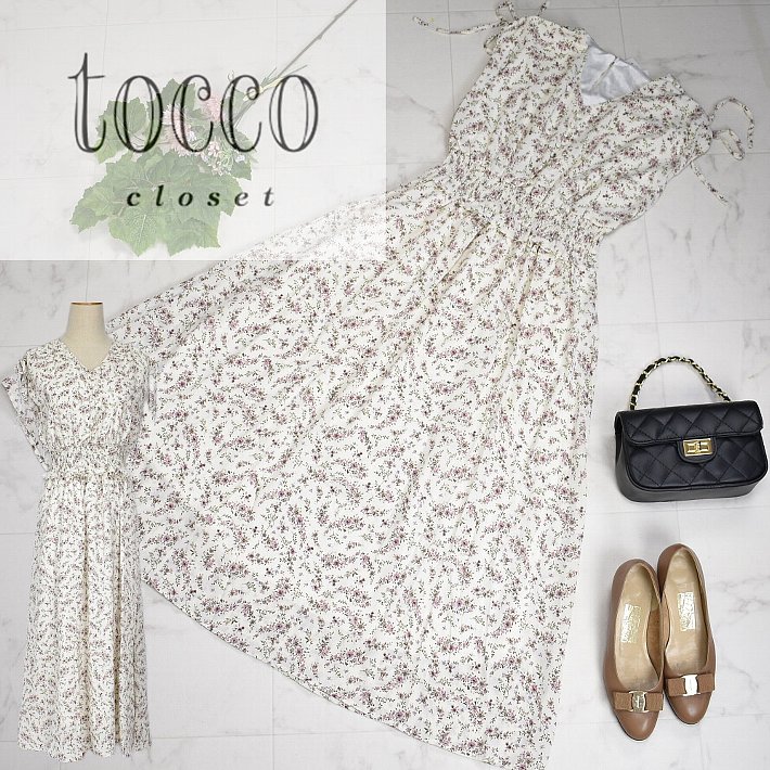 \店内50%OFF♪/トッコ クローゼット ウエストシャーリング 肩リボン フラワープリント フレア ワンピース レディース カジュアル 花柄 【小】tocco-closet デパートブランド 春 夏 秋