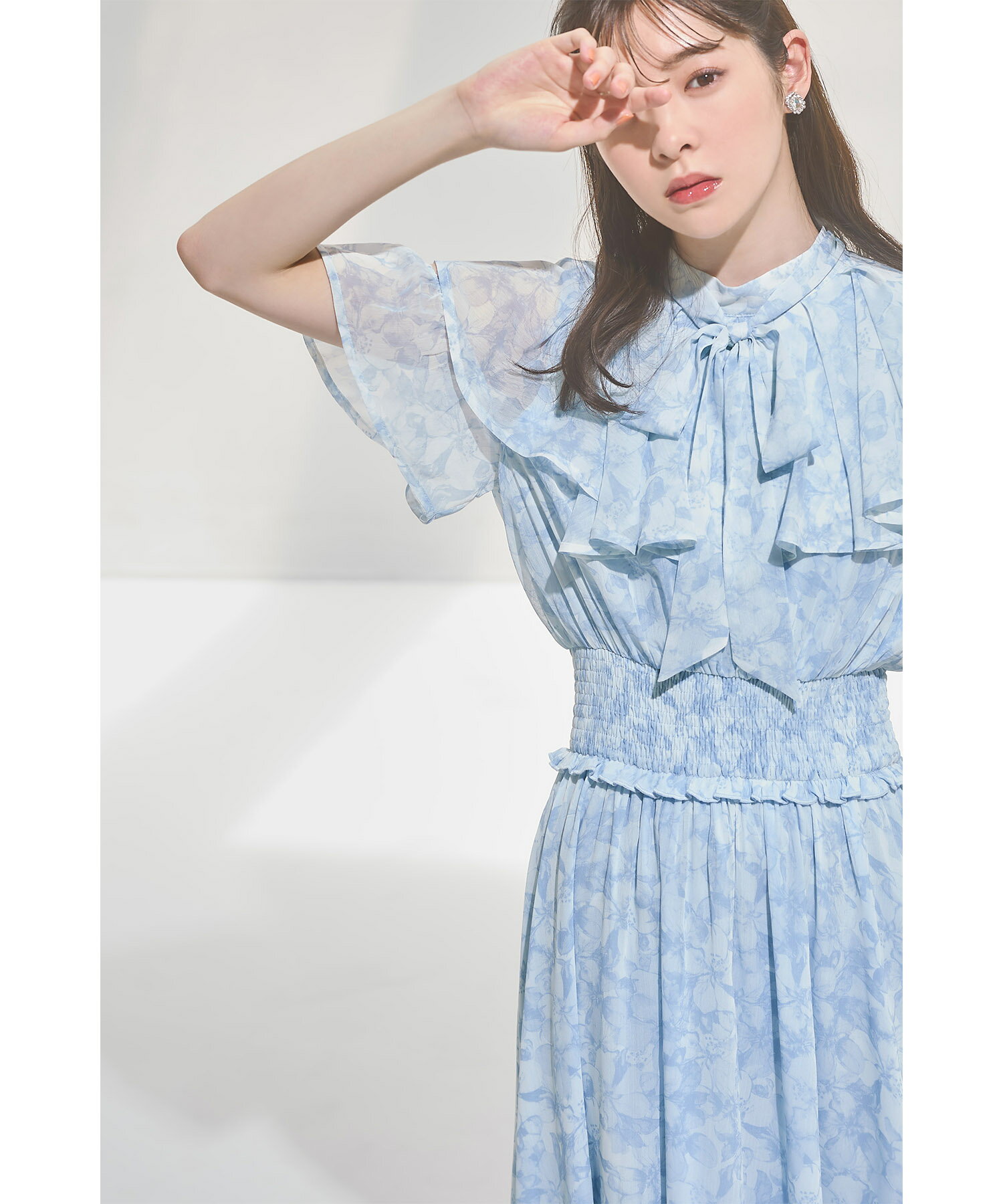 2WAYボウタイリボン付きケープフリルフラワープリントワンピース【mison マイソン】tocco closet(トッコクローゼット)≪Romantic Summer Blue≫ ブルー ベージュピンク