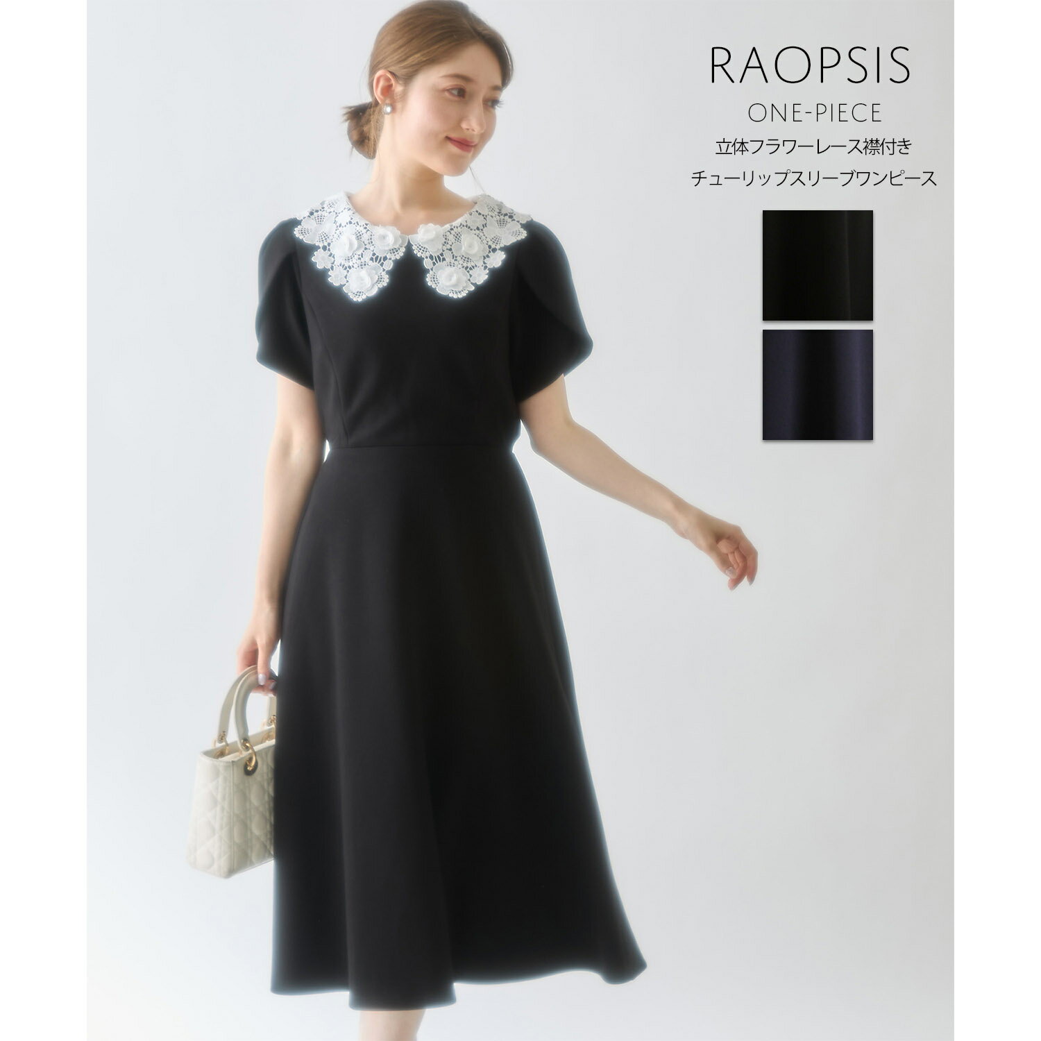 立体フラワーレース襟付きチューリップスリーブワンピース【raopsis ラポシス】tocco closet(トッコクローゼット) ブラック ネイビー