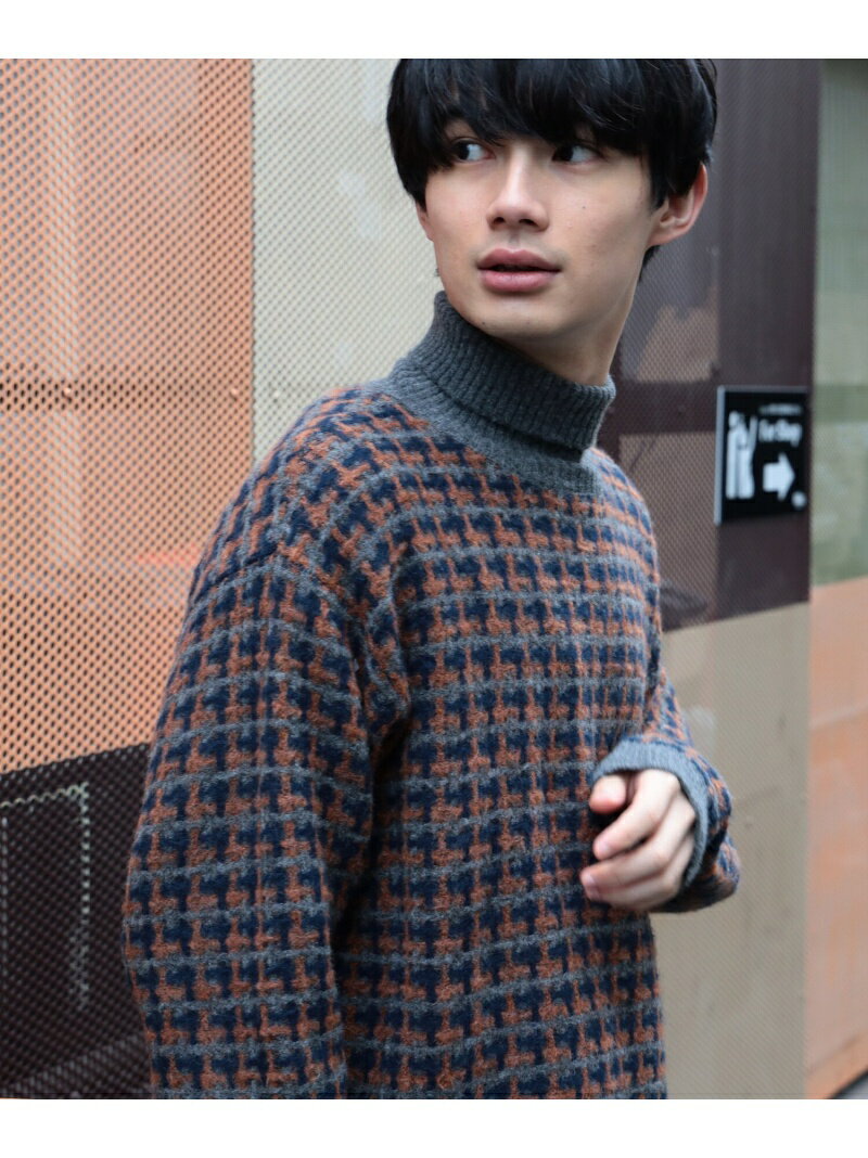 ニットB:MINGbyBEAMS/7ゲージチェックジャカードタートルネックニット