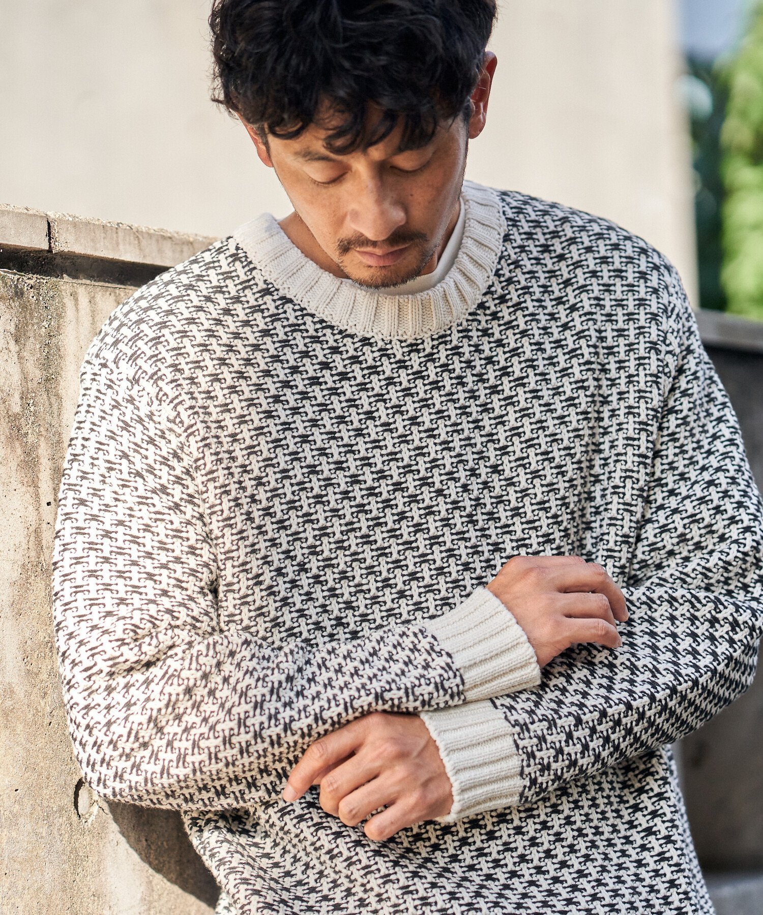 ニットB:MINGbyBEAMS/3ゲージバルキージャカードクルーネックニット