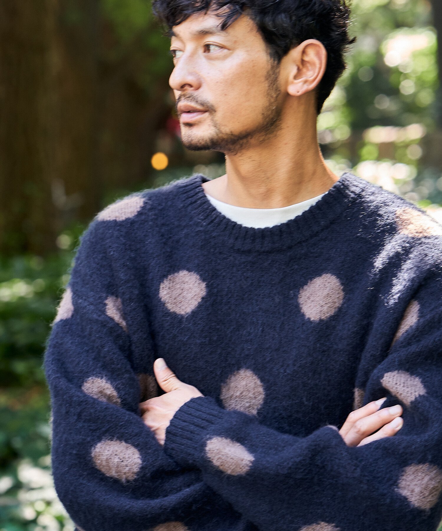 ニットB:MINGbyBEAMS/5ゲージドットモヘヤクルーネックニット