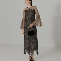 介護スナックベルサイユ 介護スナックベルサイユ 衣装で笛木優子がシアープリーツスリーブIラインワンピースドレスを使用!