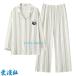 パジャマ寝間着ルームウェアストライプパンダ柄綿メンズレディースセット長袖ロングパンツ寝巻き縞柄ナイトウェア軽量