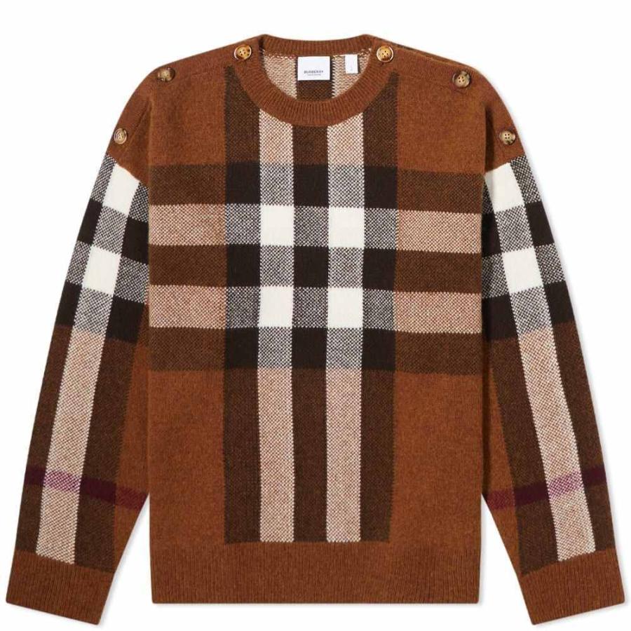 バーバリー BURBERRY クルーネックニット クルーネックセーター ブラウン メンズ 8036603 birchbrown CHECK WOOL JACQUARD SWEATER【あす楽対応_関東】【返品送料無料】【ラッピング無料】