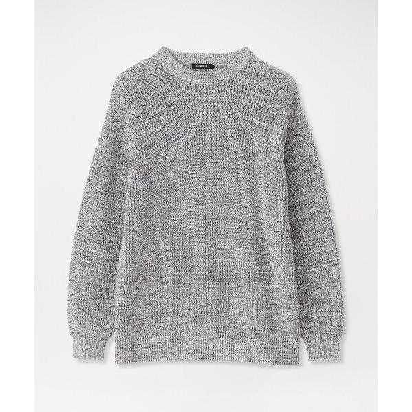 こちらは、3配色の糸を引き揃えて編んだ、ミックスヤーン クルーネックニットです。