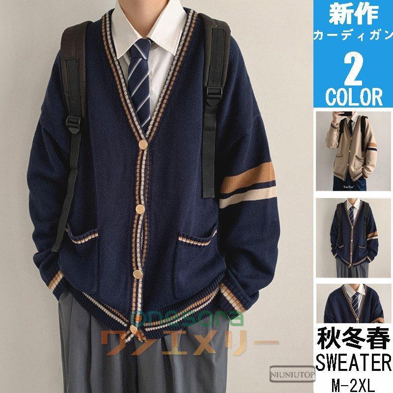 [SSUPTEMBERⅡ] スクール カーディガン ニット セーター JK制服 女子高生 大きいサイズ 秋冬 男子高生 学生 レディース メンズ ガールズ 厚手 長袖 カットソー 防寒 暖かい Vネック ゆったり 通学 通勤 カジュアル 学園風 カーキ 紺