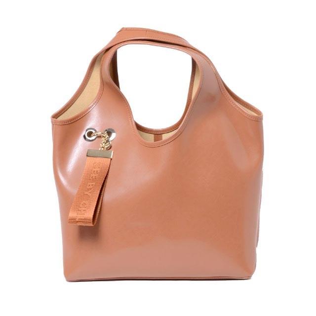こちらは、グレインが際立つ柔らかなレザーを用いた、フラットなダブル ハンドルのショッピング バッグです。