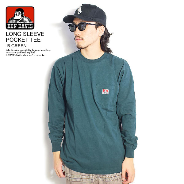 BEN DAVIS ベンデイビス LONG SLEEVE POCKET TEE -B.GREEN- メンズ Tシャツ 長袖 長袖Tシャツ ロンT おしゃれ かっこいい カジュアル ファッション トップス ストリート bendavis ベンデービス tシャツ