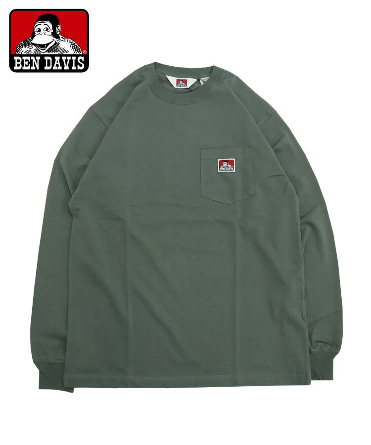 【メール便送料無料】BEN DAVIS ベン デイビス メンズ Tシャツ LONG SLEEVE POCKET TEE カーキ C-23780029 トップス クルーネック ポケット 長袖 TEE 定番 ロゴ