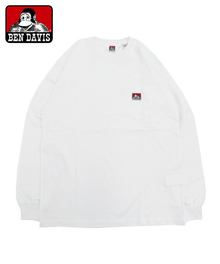 BEN DAVIS ベンデイビス メンズ Tシャツ ロンT 長袖 2023 新作 カジュアル アメカジ メンズファッション トップス クルーネック LONG SLEEVE POCKET TEE ホワイト C-23780029 トップス クルーネック ポケット 長袖 TEE 定番 ロゴ 【メール便送料無料】
