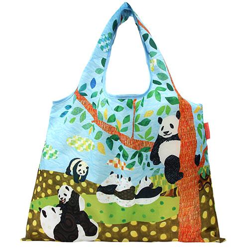 エコバッグ大容量2WAY折りたたみ【パンダの午後】ショッピングバッグデザイナーズジャパンおしゃれ可愛いメール便送料無料