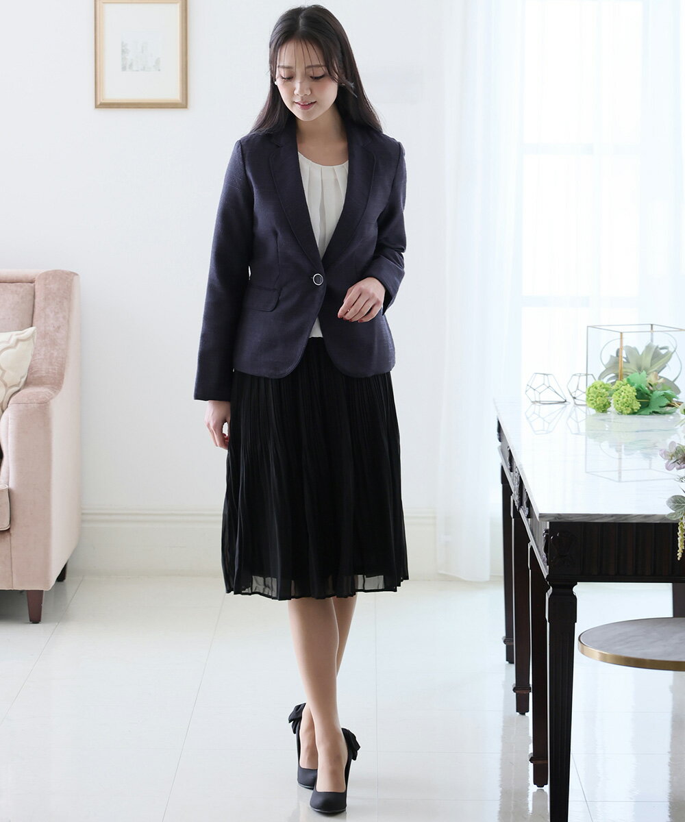 [プールヴー] フォーマル セレモニー スーツ 3点セット ノーカラー レディース M (9号) ネイビー