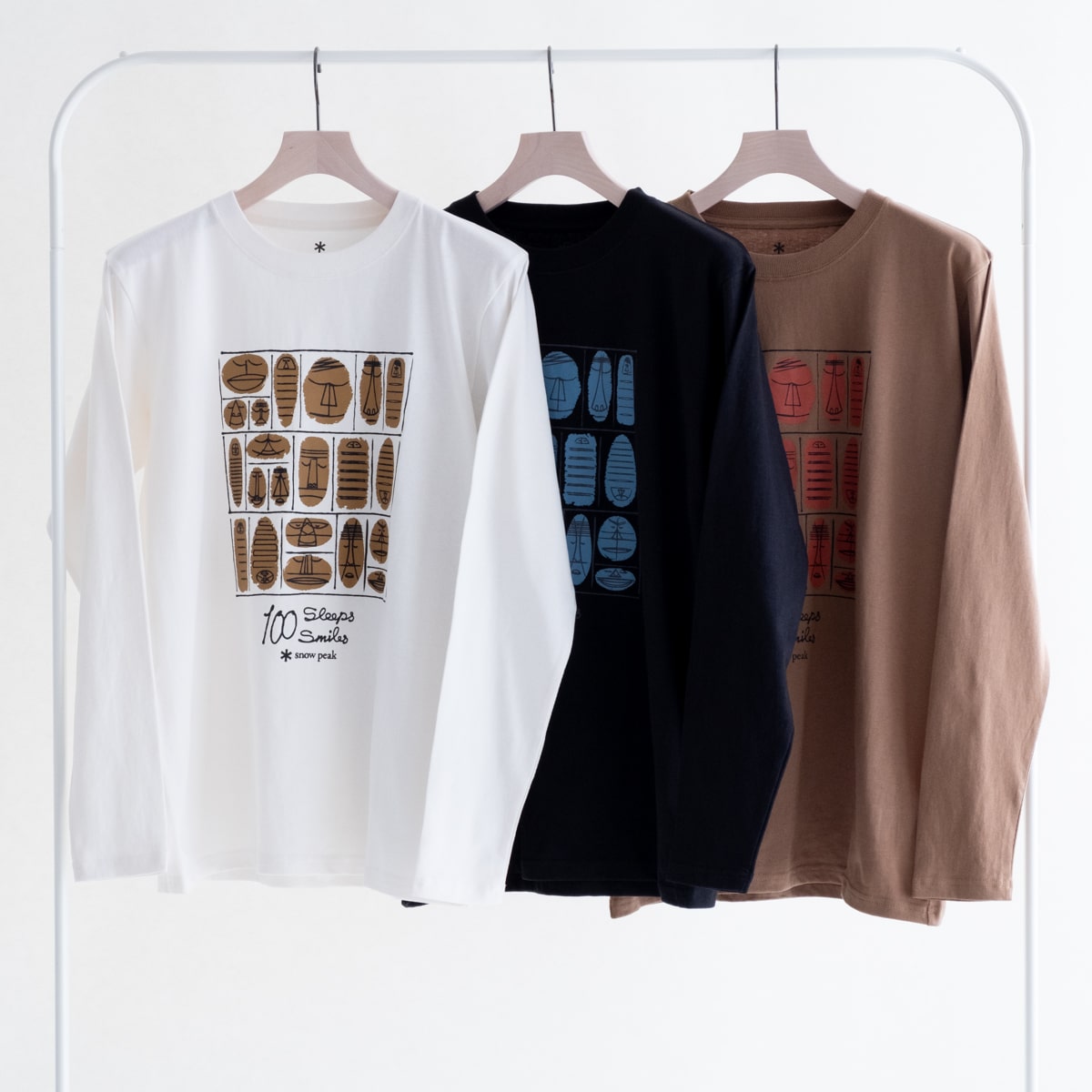 Snow Peak 100 Sleep 100 Smile L/S Tee (3色 White/Black/Brown) TS-20AU204 スノーピーク スリープ スマイル ロングTシャツ 長袖Tシャツ Tシャツ カットソー メンズ 送料無料