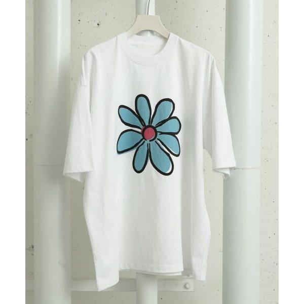 こちらは、フロントのフラワー柄がポイントのヘビーウエイトのコットン天竺素材を使用したTシャツです。