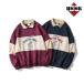 スウェット【HOOK】アメリカアンティーク風プリント切替長袖ポロシャツ