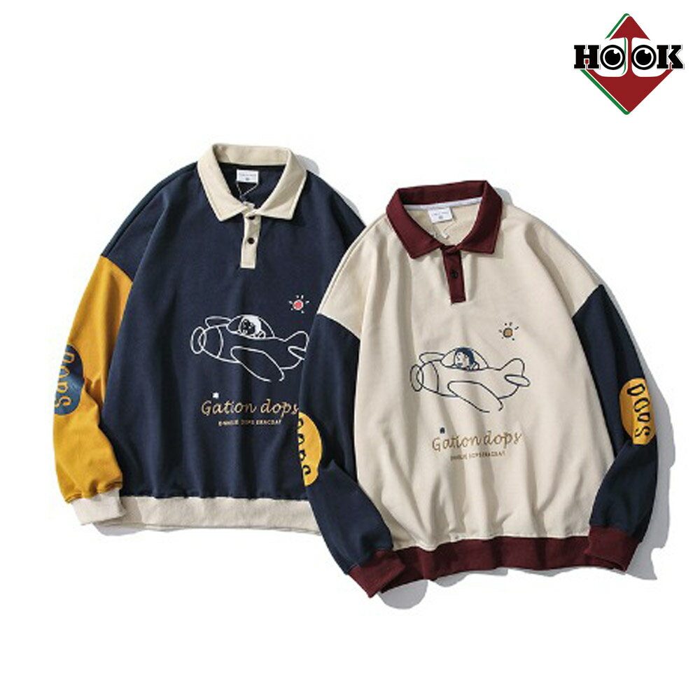 【クーポン40%OFF】ポロシャツ風スウェット スウェット 長袖 メンズ レディース ポロシャツ 綿 お揃い 服 カップル ペアルック ビッグシルエット オーバーサイズ ユニセックス 韓国ライク オルチャン ストリート【HOOK】*