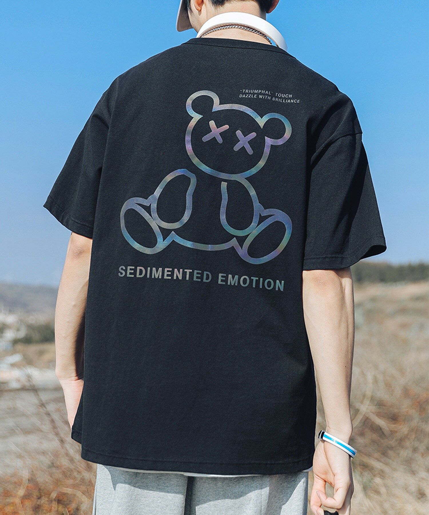 【クーポン割あり!!】【OUTLET★特別価格】tシャツ メンズ 半袖 綿100% お揃い 服 春 夏 ビッグシルエット メンズ レディース ビッグtシャツ オーバーサイズ ユニセックス 韓国ライク オルチャン ファッション ベア柄 反射プリント ストリート【HOOK】