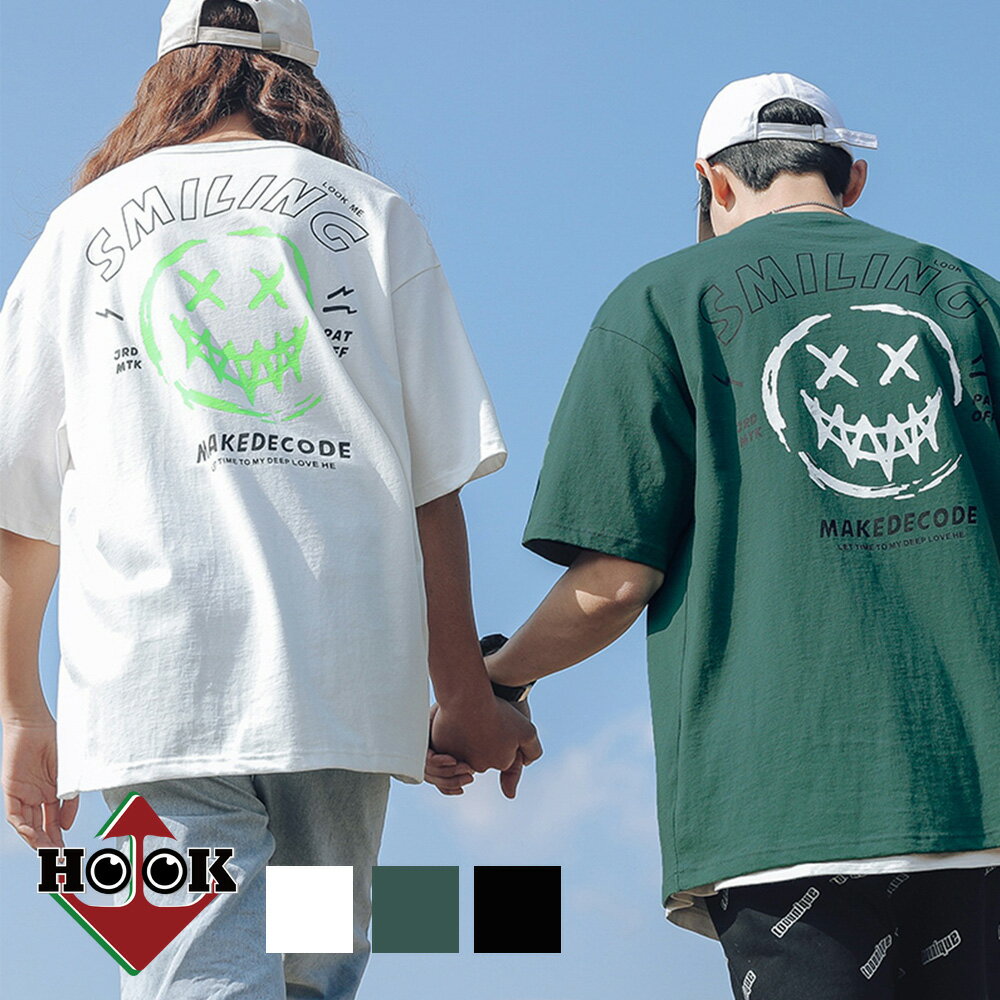 【クーポン割あり!!】【OUTLET★特別価格】tシャツ メンズ 半袖 綿100% お揃い 服 春 夏 ビッグシルエット メンズ レディース ビッグtシャツ オーバーサイズ ユニセックス 韓国ライク おそろ オルチャン ファッション スマイル ストリート【HOOK】