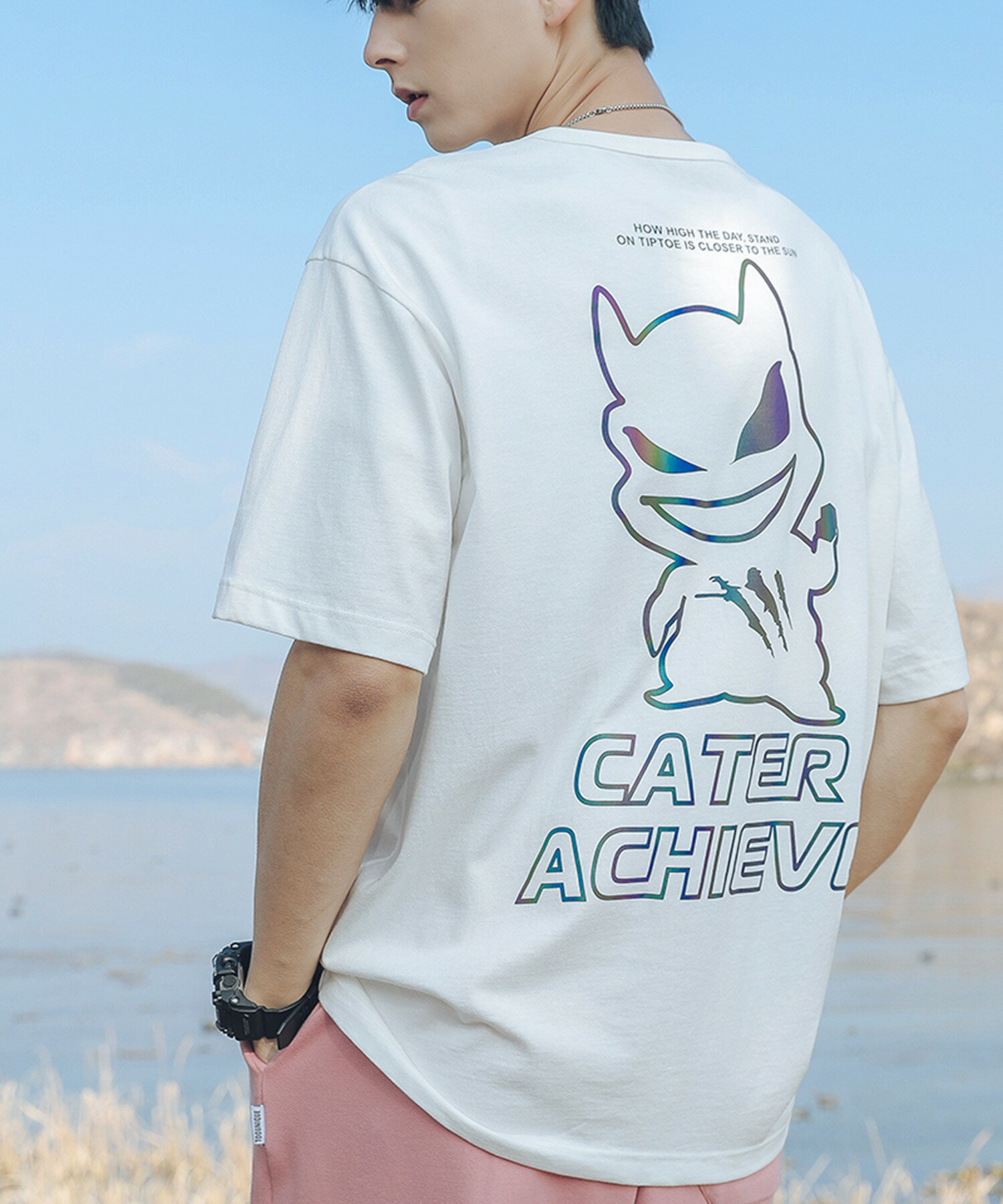 【クーポン割あり!!】【OUTLET★特別価格】tシャツ メンズ 半袖 綿100% お揃い 服 春 夏 ビッグシルエット メンズ レディース ビッグtシャツ オーバーサイズ ユニセックス 韓国ライク オルチャン デビル柄 反射プリント ストリート【HOOK】