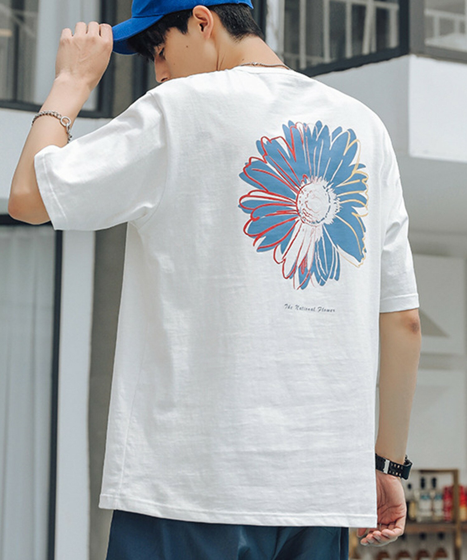 【クーポン割あり!!】【OUTLET★特別価格】tシャツ メンズ 半袖 綿 コットン 綿100% お揃い 服 春 夏 ビッグシルエット メンズ レディース ビッグtシャツ オーバーサイズ ユニセックス 韓国ライク オルチャン ファッション マーガレット柄 ストリート【HOOK】