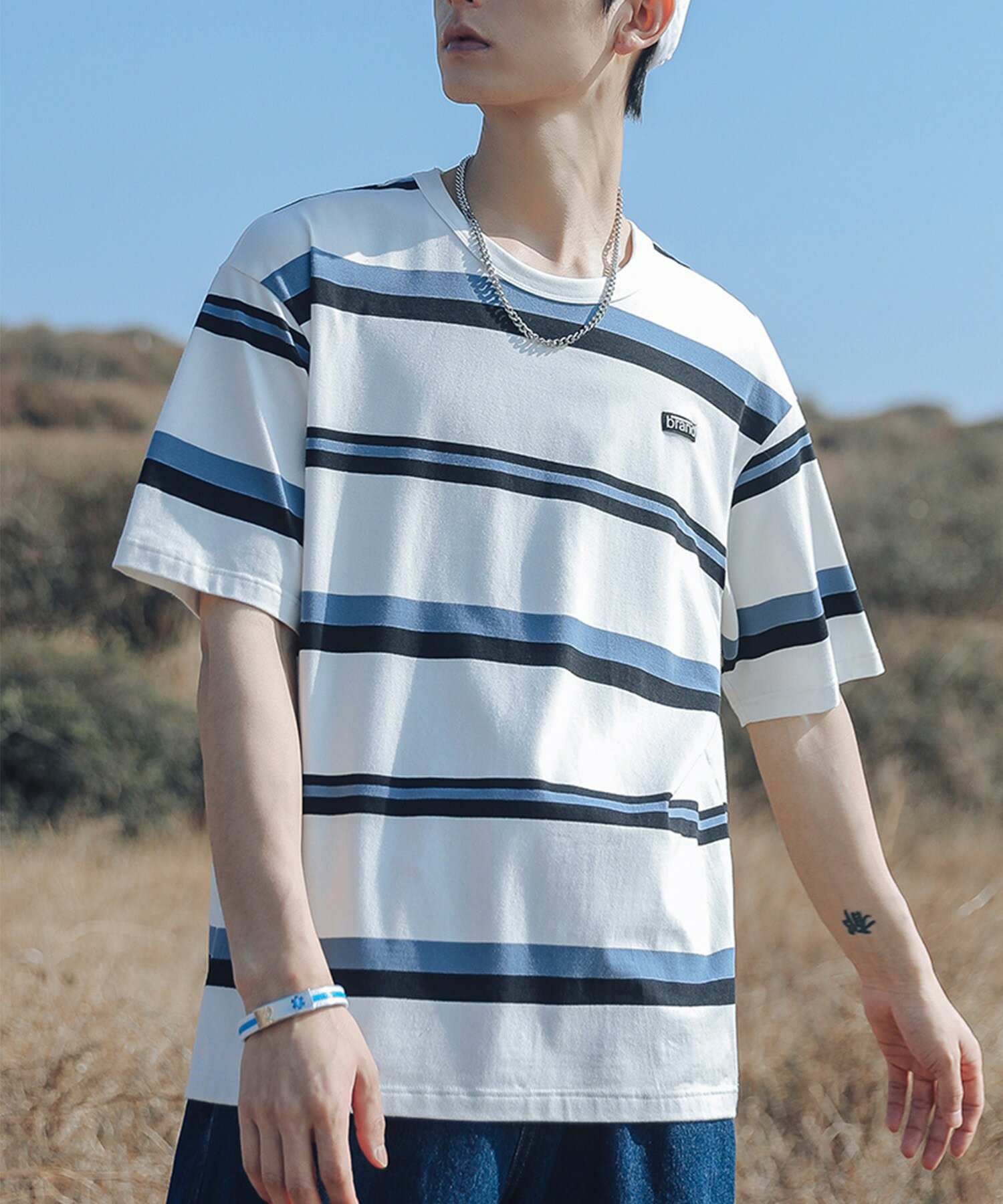 【クーポン割あり!!】tシャツ メンズ 半袖 綿 コットン 綿100% ボーダー プリント お揃い 春 夏 ビッグシルエット メンズ レディース ビッグtシャツ オーバーサイズ ユニセックス 韓国ライク オルチャン ロゴ ストリート【HOOK】*
