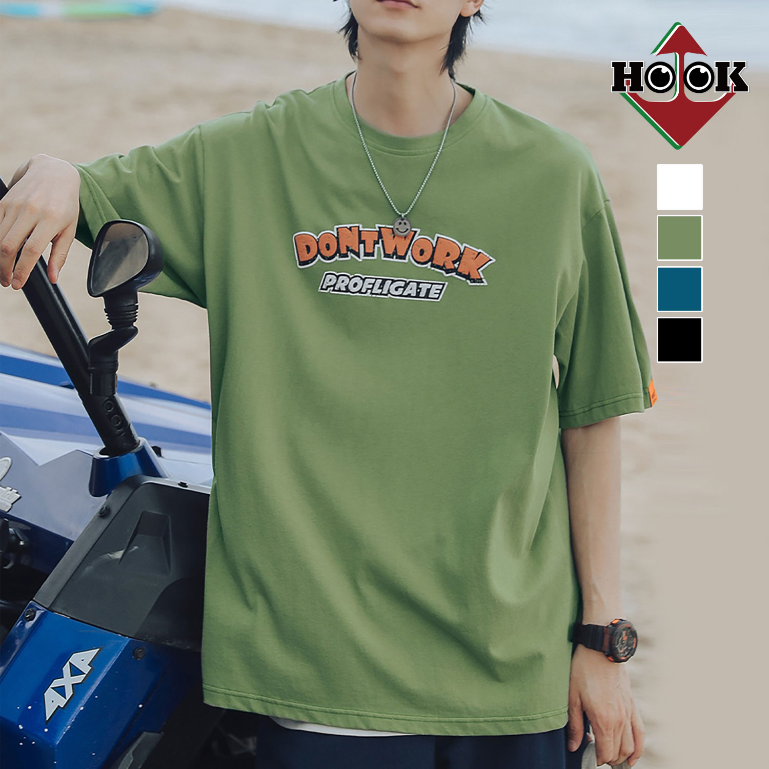【クーポン割あり!!】tシャツ メンズ 半袖 綿 コットン 綿100% ロゴ プリント お揃い 春 夏 ビッグシルエット メンズ レディース ビッグtシャツ オーバーサイズ ユニセックス 韓国ライク オルチャン アメカジ ストリート【HOOK】*