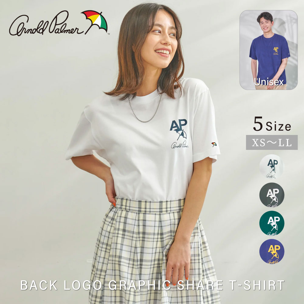 【公式】 アーノルドパーマー バックロゴ グラフィック シェア Tシャツ レディース メンズ 男女兼用 ホワイト ブラック グリーン ネイビー シンプル カジュアル 春 夏 パパ ママ 通勤 通学 公園 おでかけ 夫婦 家族 お揃い デイリー 半袖 ロゴプリント 23ss pt10