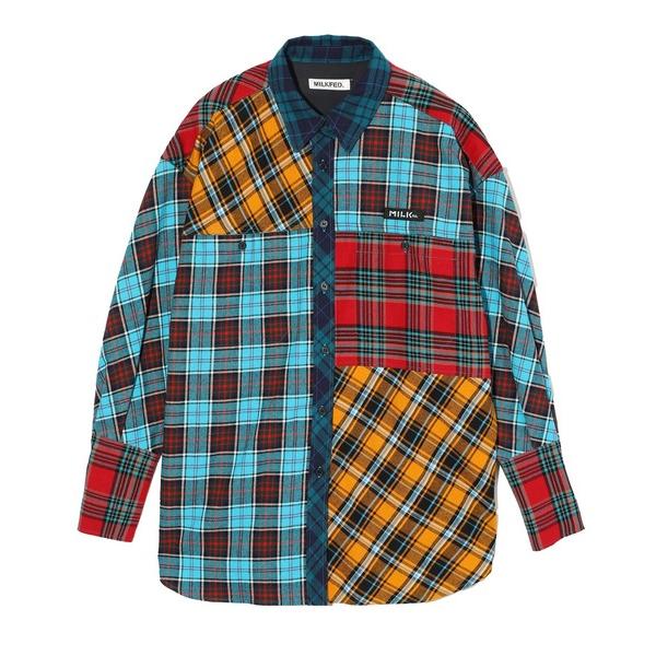 スペシャルプライス【公式】MILKFED. ミルクフェド PLAID PATCHWORK SHIRT シャツ パッチワーク チェック柄 ネル 長袖 ロングスリーブ トップス レディース 人気 おしゃれ 贈り物 プレゼント☆