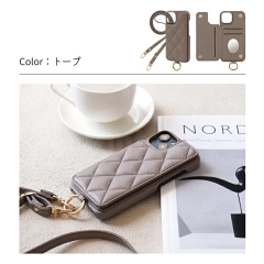 Elegante公式 Quilting Shoulder iPhone 15 用 ケース スマホケース ショルダー ストラップ キルティング アイフォン カード 収納 ミラー マグネット おしゃれ かわいい iphone用ケース スマホ 携帯ケース トープ