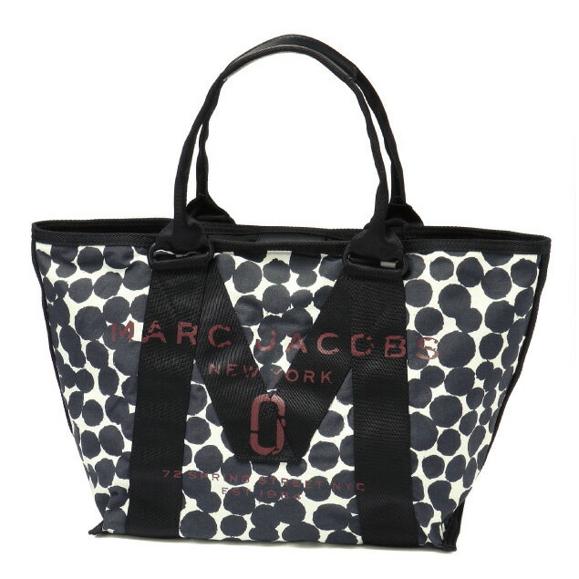 こちらのマークジェイコブスのトートバッグは、コットン・ナイロンのキャンバス地で、帯ひもで、マークジェイコブスのMがデザインされており、MARC JACOBS NEW YORKのロゴもプリントされています。