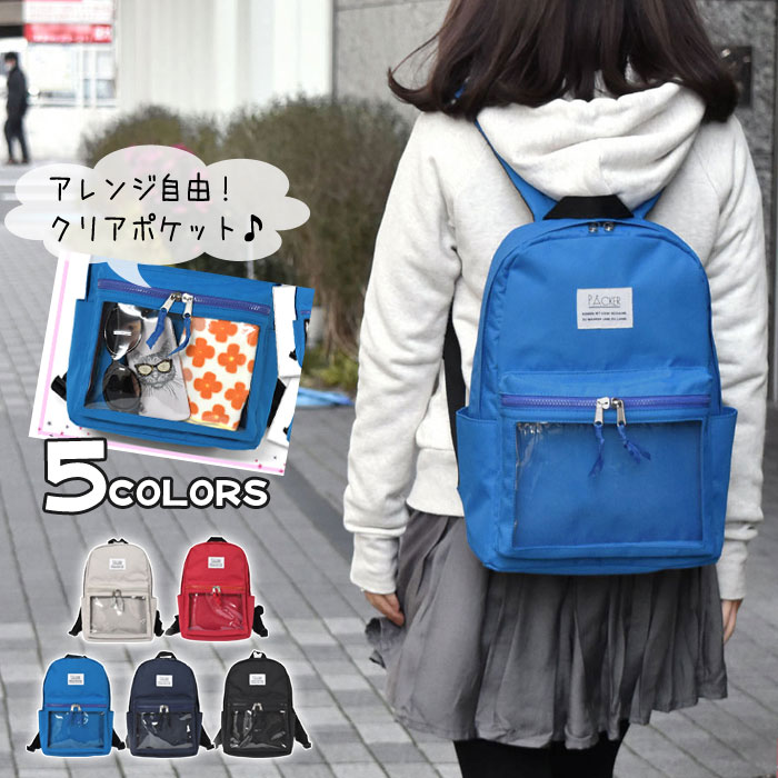 マイコレクリアポケットミニリュック レディース リュック バッグ 鞄 デイバッグ バックパック デイパック 無地 シンプル 通学 通勤 痛バッグ 痛リュック 痛バ コレクション カジュアル 透明 クリアバッグ1704