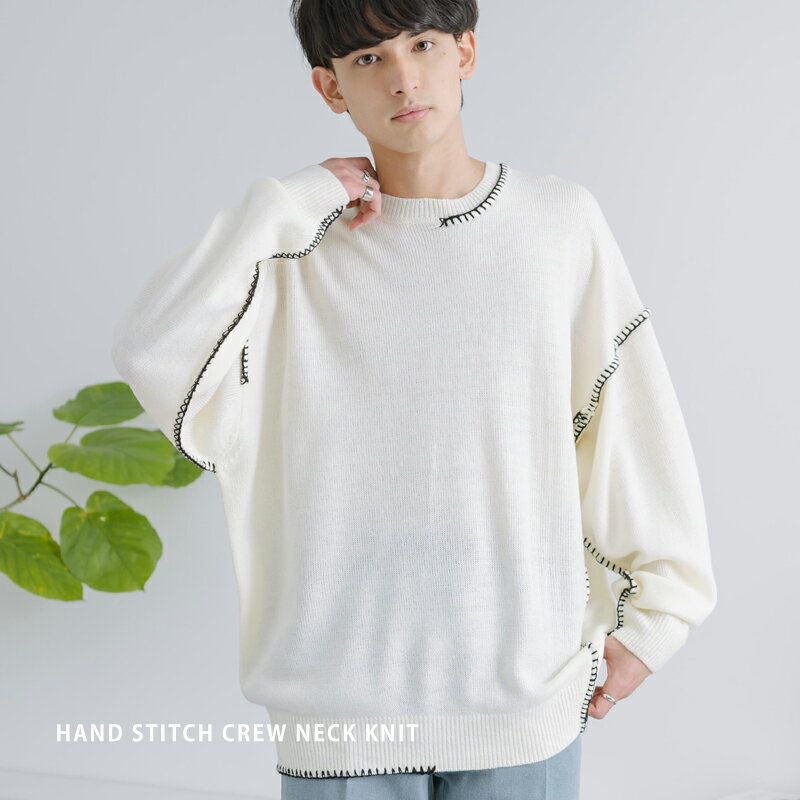 ニットセーターメンズトップスハンドステッチクルーネックオーバーサイズビッグシルエットルーズゆったり秋秋服送料無料