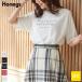 トップスTシャツカットソー半袖綿コットンUVカットフレンチスリーブレディース夏Honeysハニーズロゴフレンチ袖Tシャツ