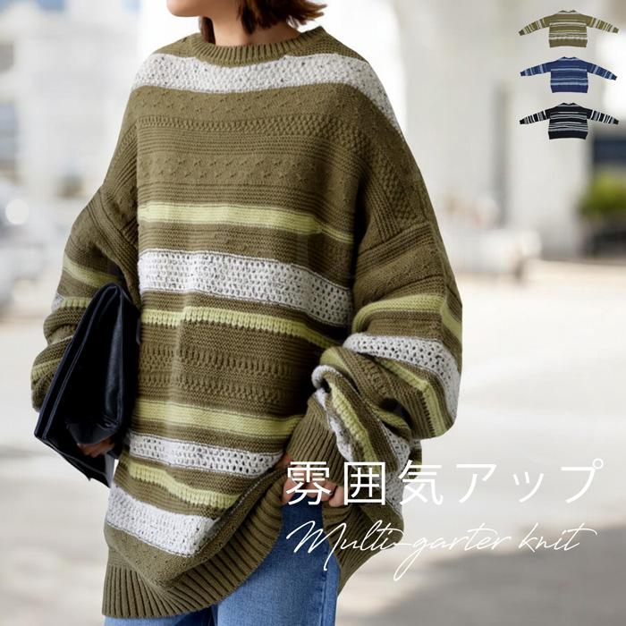 ジャガードニットニットレディーストップス長袖送料無料・8月24日発売。メール便不可