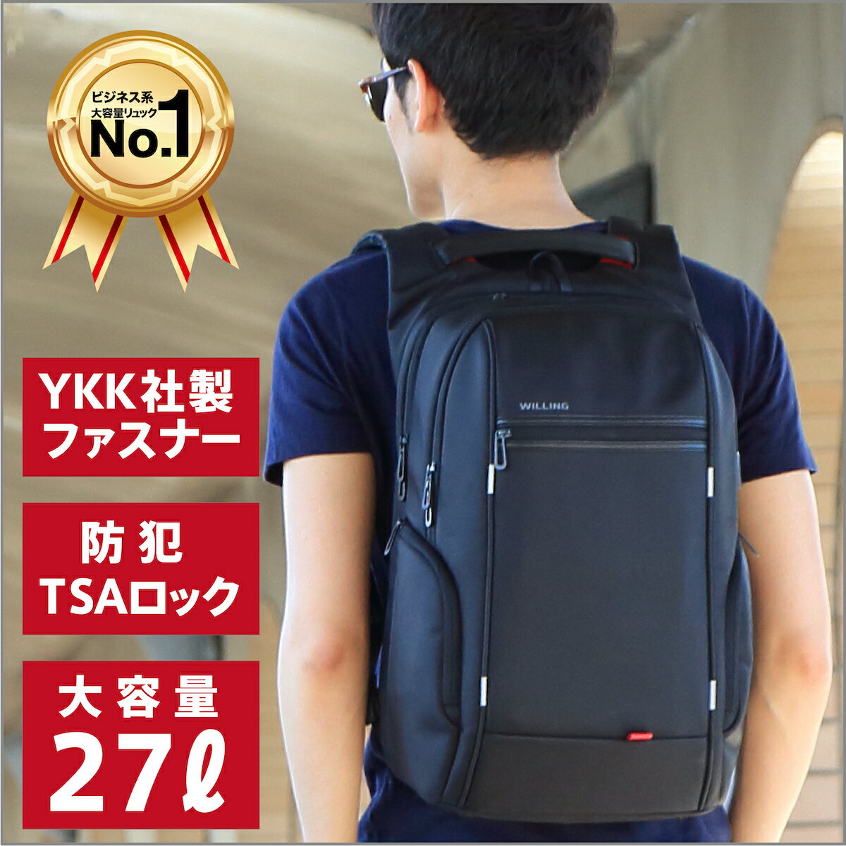 【送料無料】27L 軽量 防犯 TASロック ビジネス リュック ブラック 通勤 通学 防水 レインカバー チェストベルト 付属 父の日 プレゼント A4 サイズ 出張 海外 旅行 バックパック リュックサック 黒 ノートPC 撥水 機能 Willing
