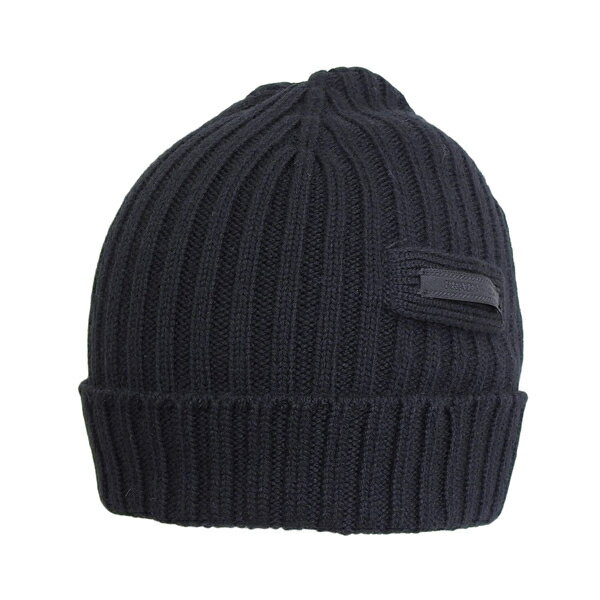 PRADAプラダUMD429ビーニーニットキャップラバーパッチロゴ帽子ニット帽ウールネイビー【中古】