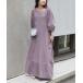 ワンピース【india】配色ステッチボリュームスリーブワンピ