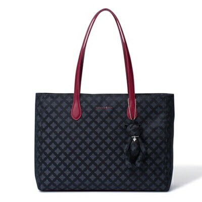 [パトリック・コックス] トートバッグ ≪カラーカルテット≫A4収納 軽量 ユリ柄ジャガード生地 カラフルハンドル くまチャーム付 レッド