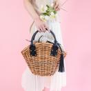 ラタンパールハンドルバケツバッグかごバッグパールハンドル2wayショルダーバッグハンドバッグバケツ型バッグラタン素材ショルダー肩掛け手持ち