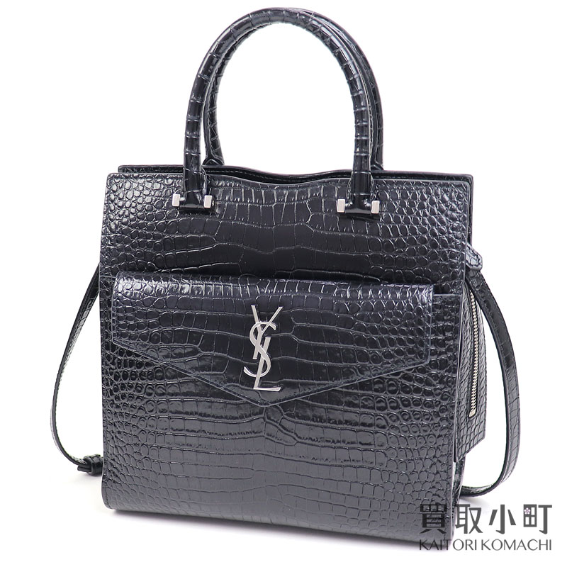 【最大1万円OFFクーポン! 8/20〜】サンローラン 【YVES SAINT LAURENT】 アップタウン スモール クロコダイルエンボスシャイニーレザー ブラック YSLメタルロゴ モノグラムサンローラン カーフ 2WAYショルダーバッグ カバス 561203【中古】